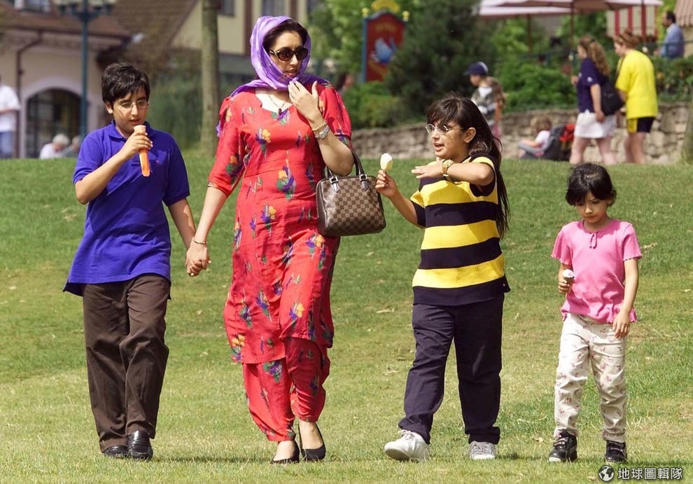 1999年,布托和她的三個小孩走在英國街頭。當時,布托夫婦因腐敗和濫權被判監禁與罰款,他們也帶著孩子開始了流亡海外的生活。