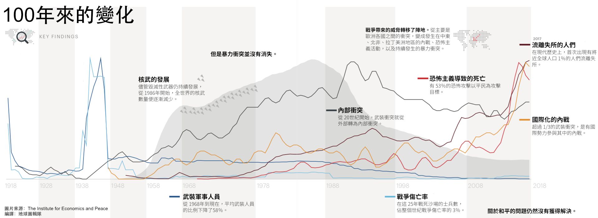 圖為這 100年來,國際暴力衝突的轉變。