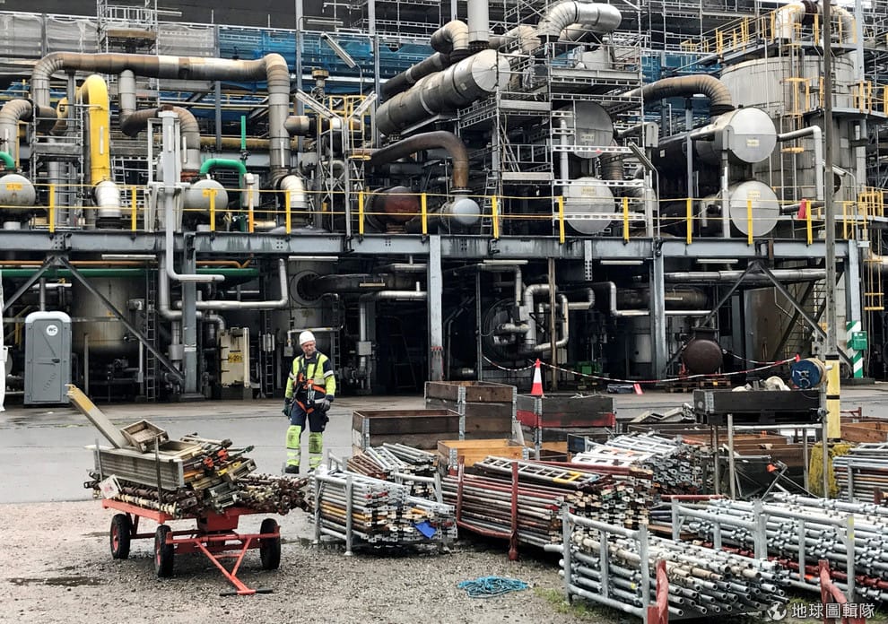 圖為 2017年11月,在挪威波什格倫(Porsgrunn)的一間氨工廠。歐洲幾個比較大型的氨工廠位於英國、挪威、荷蘭和法國。