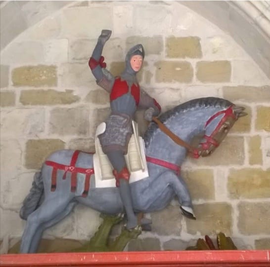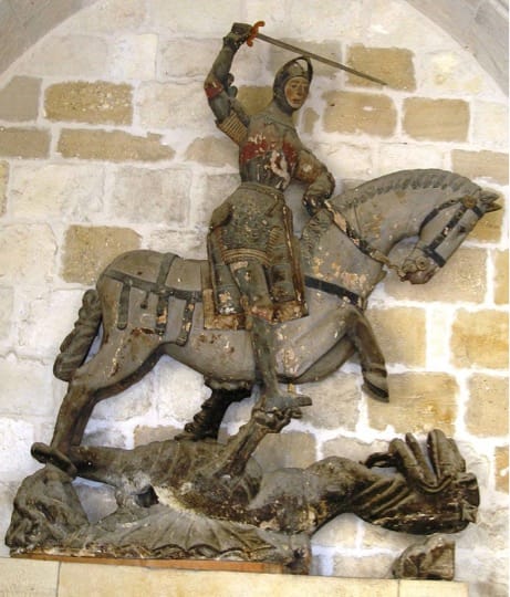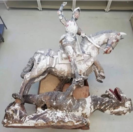 2018年4月,在西班牙北部納瓦拉省(Navarre)城鎮埃斯特利亞(Estella)的聖米歇爾教堂(Church of Saint Michael),這裡有著一尊來自 16世紀的屠龍騎士聖喬治的木雕,隨著時間經過,這尊雕像已經出現破損、褪色的情況。