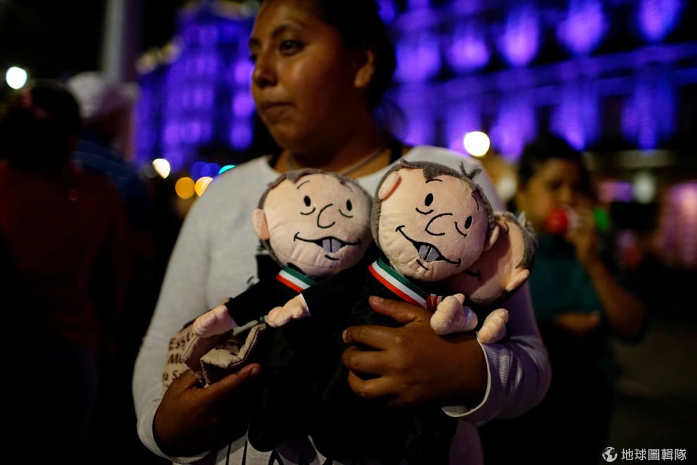 支持奧布拉多的民眾抱著他的人偶,在墨西哥市中心等待總統大選的結果。