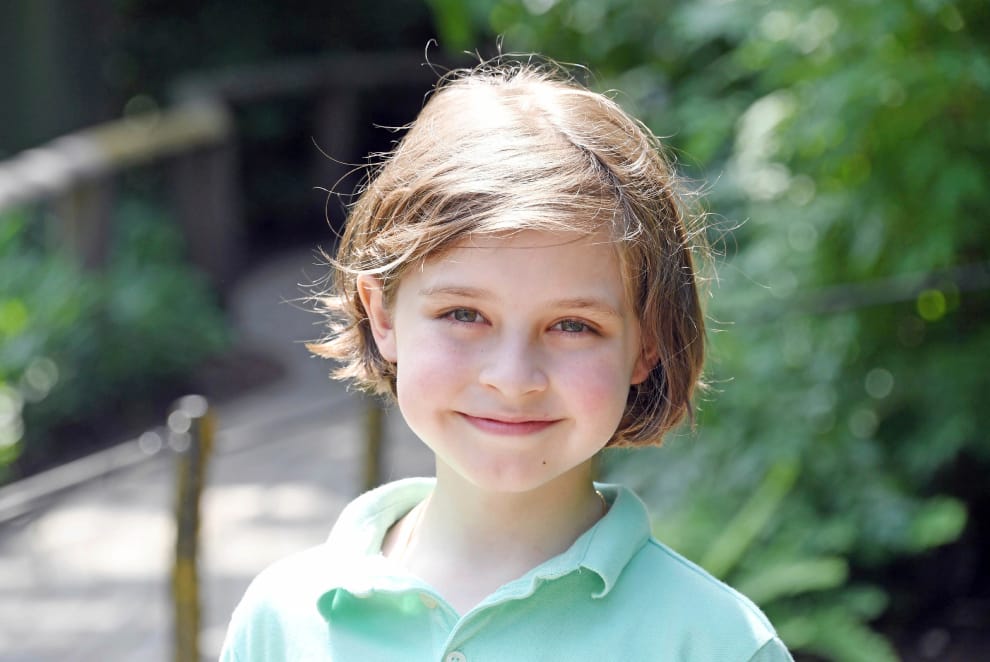 畫面中是 6歲的賽門斯。今年 8歲的他已經準備上大學。