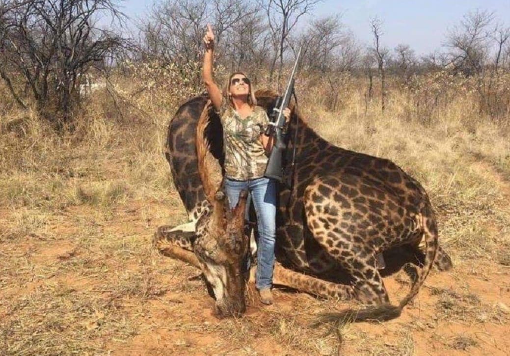 一年前,住在美國肯塔基州的塔莉(Tess Thompson Talley)來到南非打獵,她開心地和自己的獵物拍照,照片裡是一隻大型公長頸鹿,毛色偏黑的牠蜷縮在塔莉的身旁已經沒了氣息。