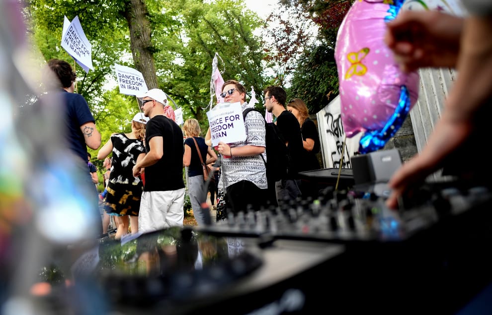 當一名伊朗少女因為Instagram的跳舞影片被捕後,一些人來到伊朗駐德國大使館外抗議,為人們在伊朗自由跳舞的權利發聲。
