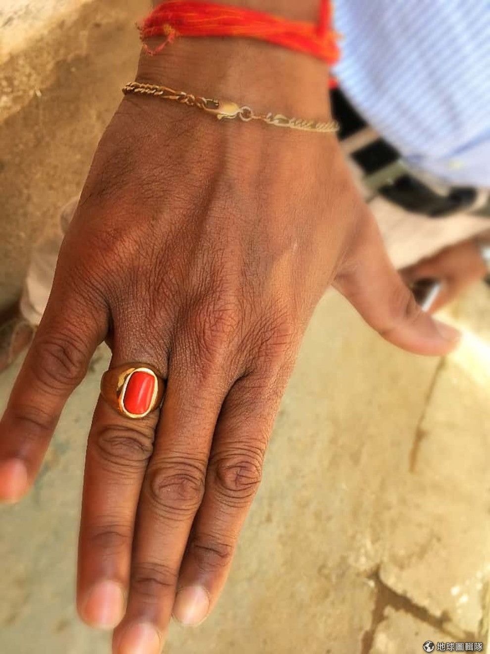 「其實很多人都有戴,你們可能沒有注意到而已。」印度友人說。果然,在印度街上我們觀察到許多店家、商人、男男女女,都佩戴著寶石戒指,就連路邊也隨時可以看見,販賣著被印度友人稱為「絕對是假的」的「石頭」戒指。