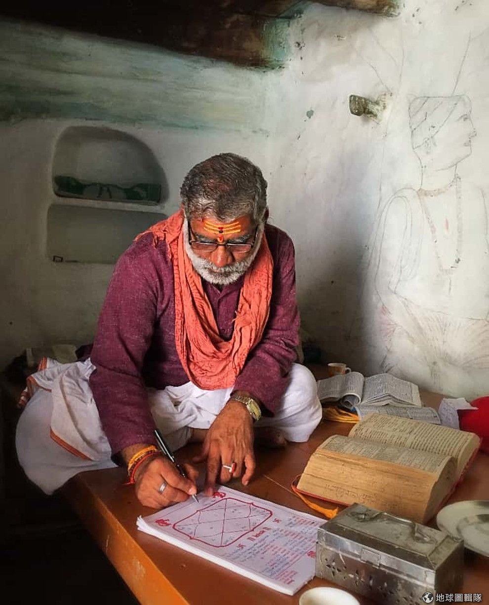 印度僧侶查找古老曆法選配寶石。照片提供/Jess 爵士