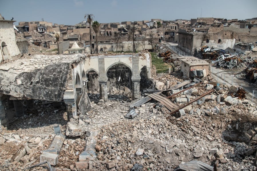 圖為戰後西摩蘇爾城的樣貌,到處一片狼藉。