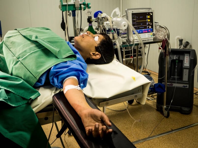 網友Javier Rius Trigueros/MSF在蓋亞拉醫院內,一名被流彈擊中的少年躺在診療台上接受治療。