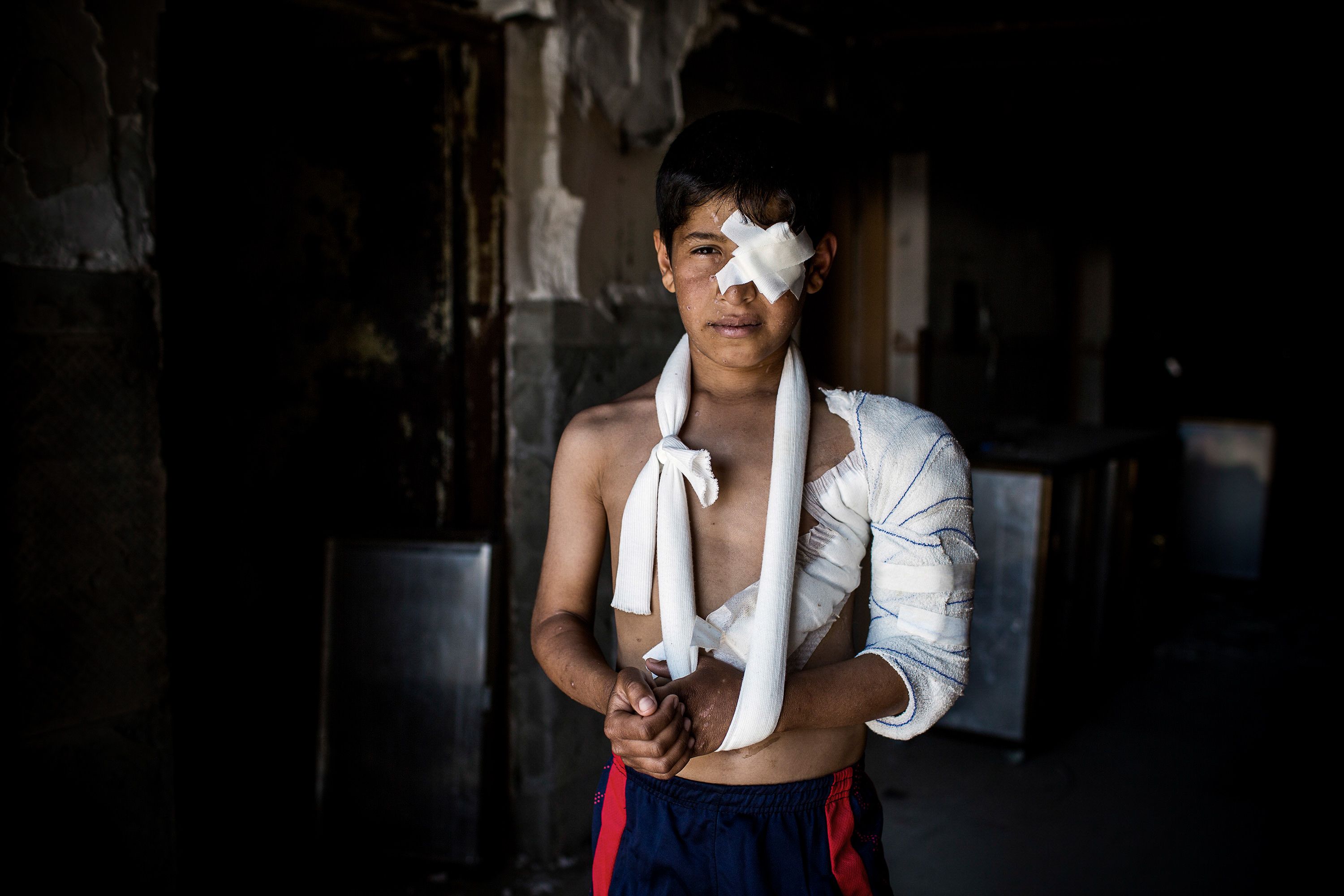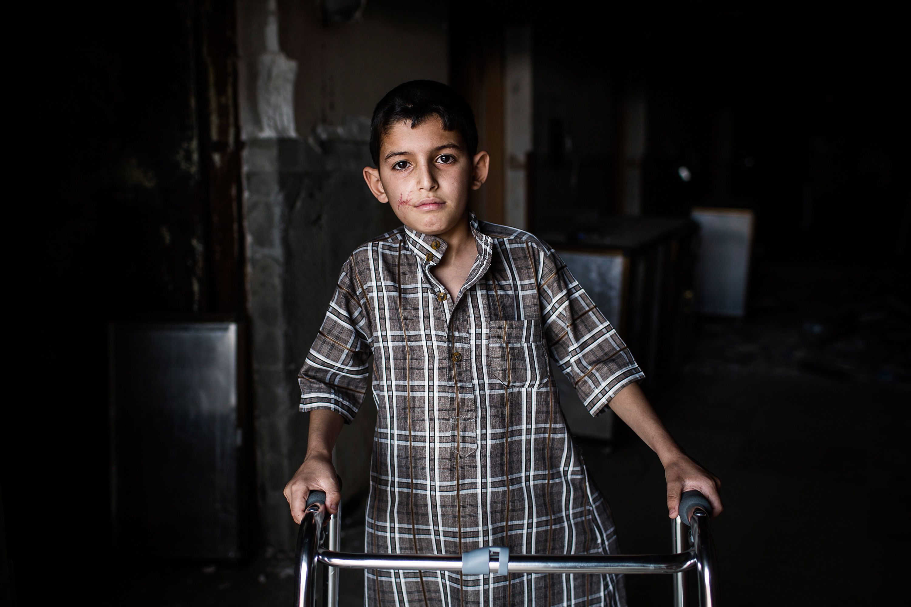 在哈姆達尼亞鎮,11歲的穆罕默德(Mohamed)在無國界醫生組織的術後護理機構休養生息。