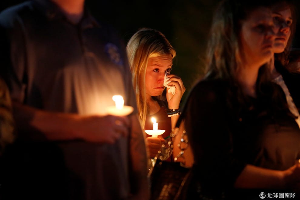 2017年10月6日,在悼念受害者的守夜活動上,民眾默默拭淚。