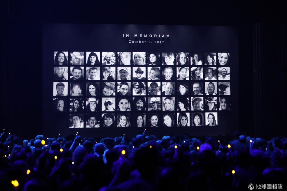 2017年11月,在田納西州納許維爾市舉辦的鄉村音樂協會頒獎典禮上,投影出了在拉斯維加斯槍案中罹難的受害者。