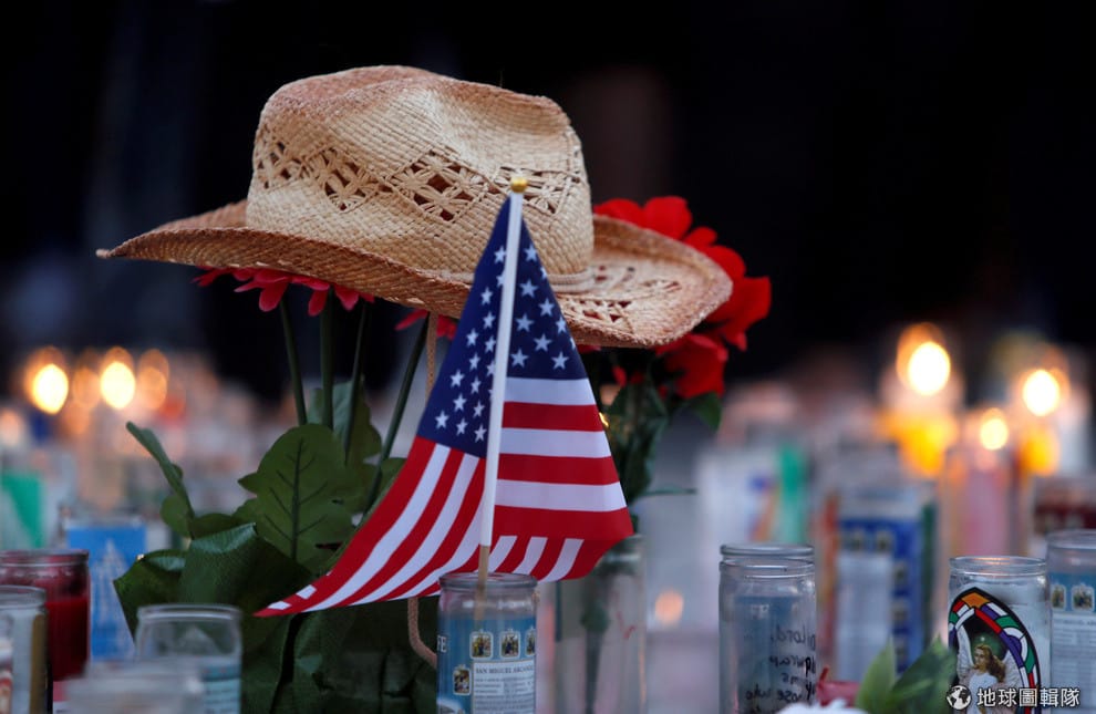 2017年10月,民眾在悼念槍案罹難者的紀念地點上擺了一頂帽子,並且插上了美國國旗。