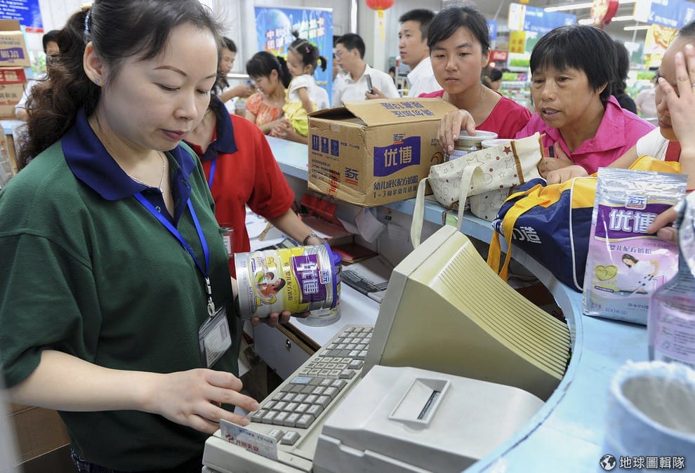 一連串爆發的毒奶粉事件,讓中國的消費者對國內生產的奶粉不具信心,這種情況讓進口奶粉特別受歡迎。照片中是香港一家標榜日本奶粉的商店,門外全是等著買奶粉的消費者