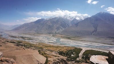從廢棄的Yamchun城堡上看瓦罕走廊,河谷另一端就是阿富汗。