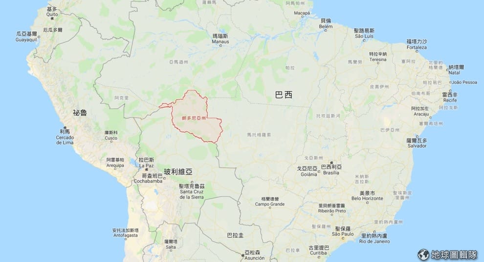 圖中紅色區域就是「洞人」生活的朗多尼亞州。過去,FUNAI曾想和「洞人」接觸,但都被打了回票。