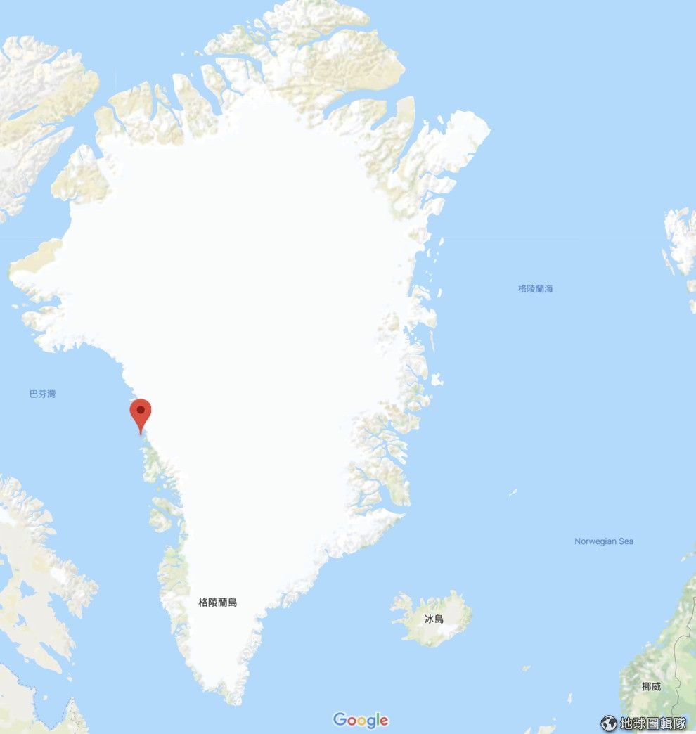 圖即為本月中,逼近伊納蘇特島的大冰山。
