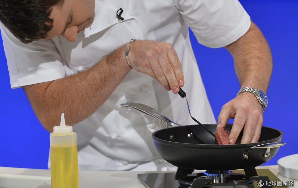 科學家提取牛的幹細胞,花費 3個月培育出 2萬個肌肉纖維,接著費盡千辛萬苦將 2萬個肌肉纖維聚合在一起,形成一塊漢堡肉,最後再用甜菜汁染色,目標是創造出在生物學上跟牛肉完全相同的肉。