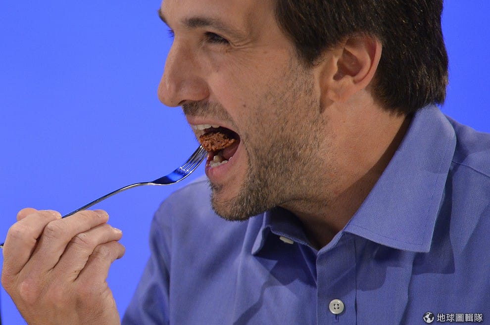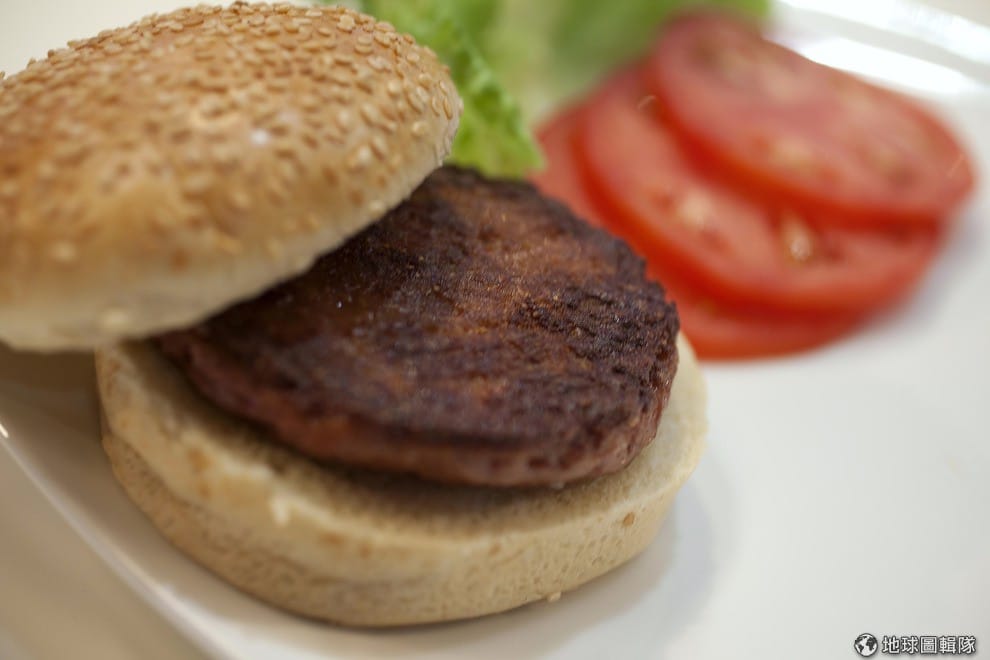 作家謝瓦德試吃人造漢堡肉。