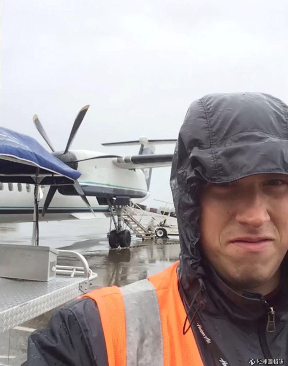 羅素在地平線航空擔任地勤 3年半,他的工作包含引導飛機起飛、接上登機門、處理行李、替飛機除冰等等。