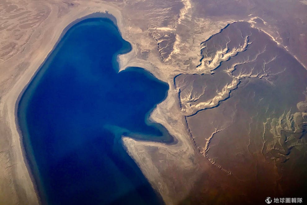 圖為今年 7月,攝影師從哈薩克阿克套市(Aktau)上空往地面拍下一張可以同時看到裏海和附近山丘的照片。