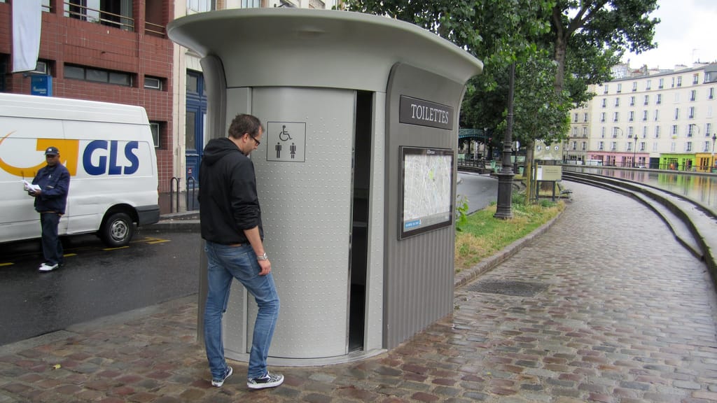 在巴黎街頭可以看到這樣的公廁,不僅男女皆可用,還需要按鈕才能進入密閉的如廁空間。