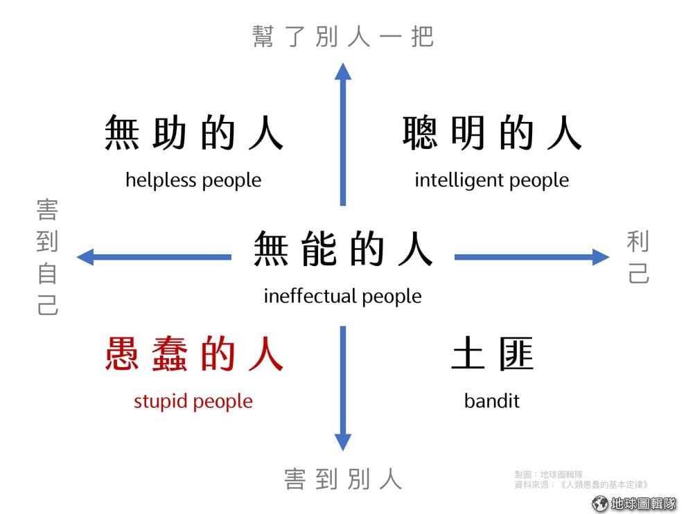 然而,蠢人之所以很危險,就是因為蠢人只有在既沒幫到別人、又沒幫到自己這件事上是一致的。
