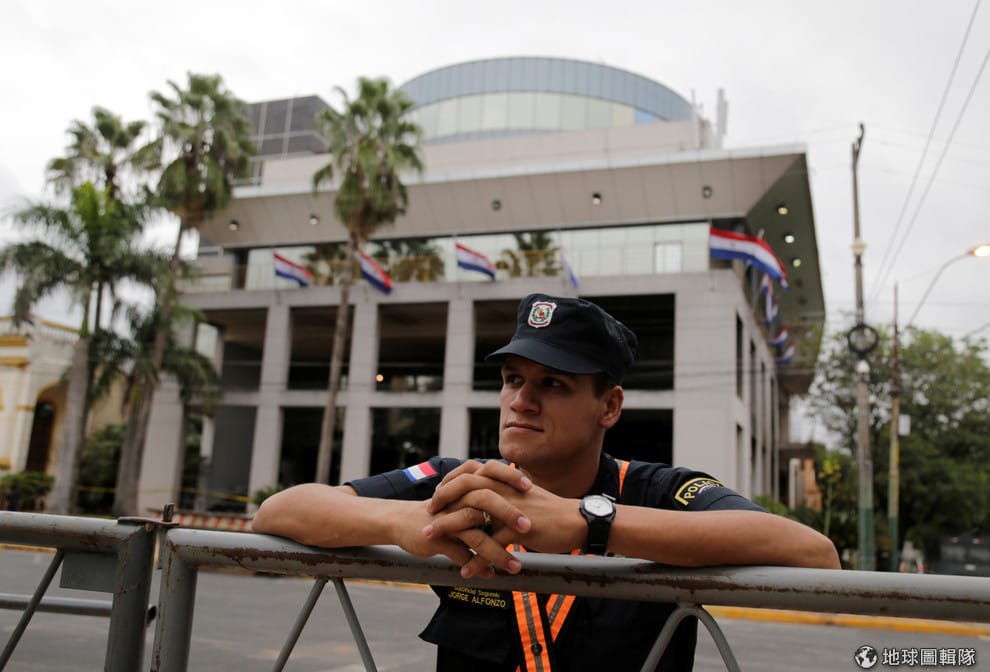 2017年,一名巴拉圭警察站在位於首都亞松森(Asuncion)的國會大廈外,這次的槍枝失竊事件讓警方顏面無光。