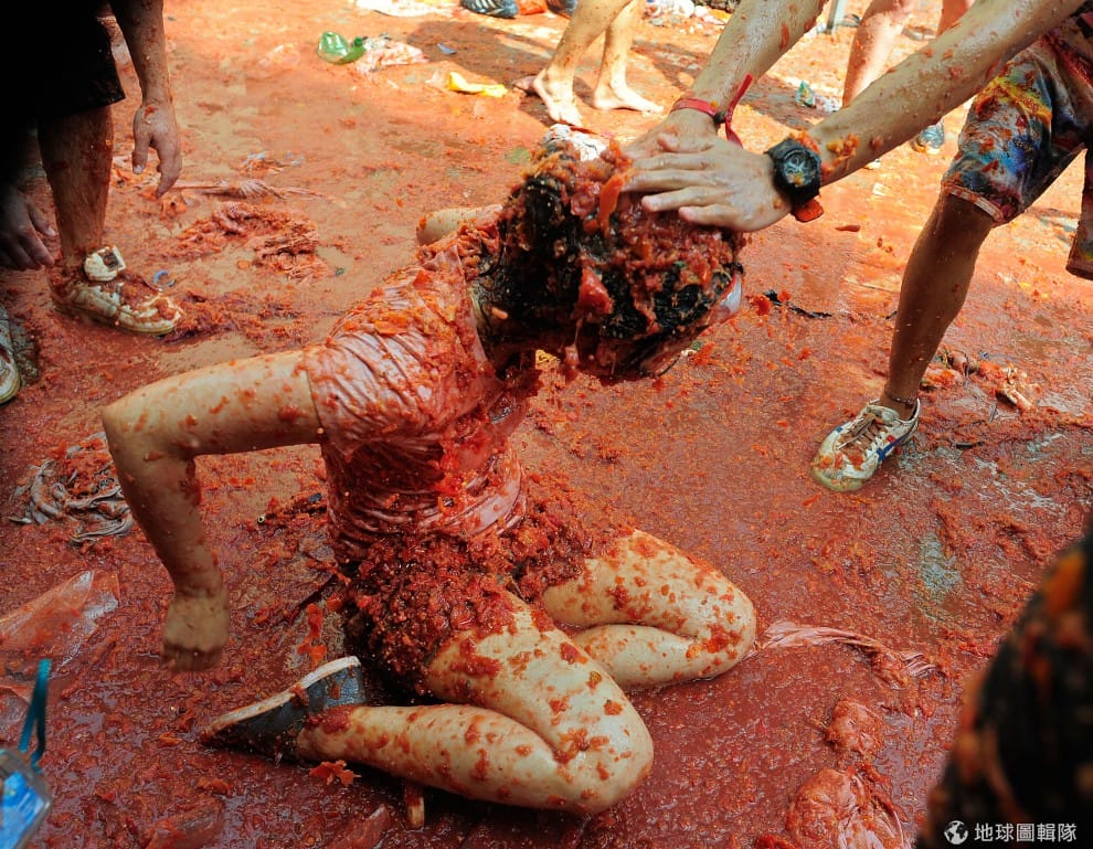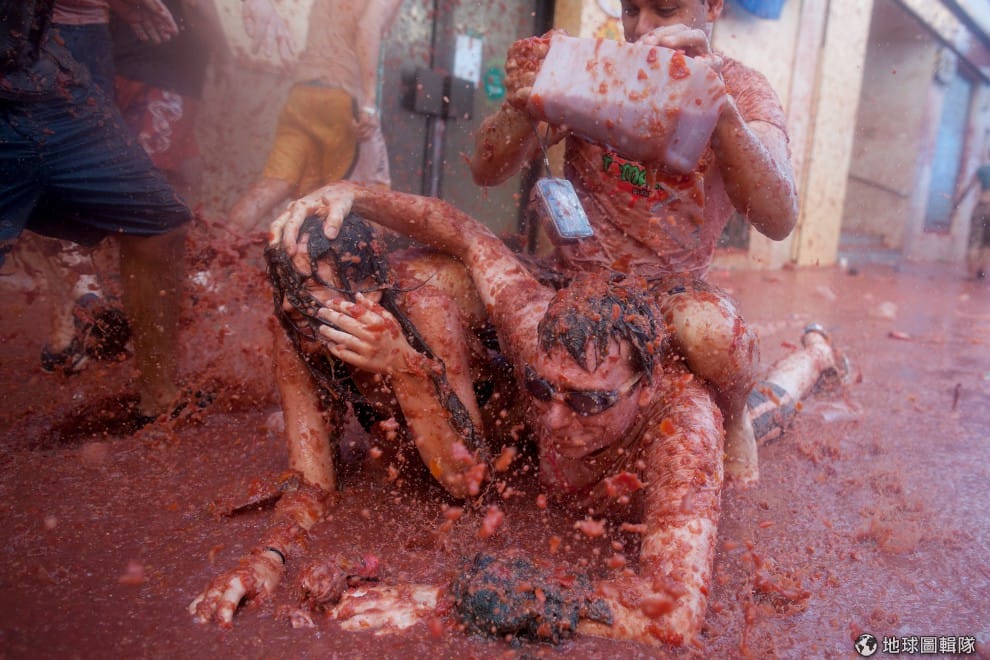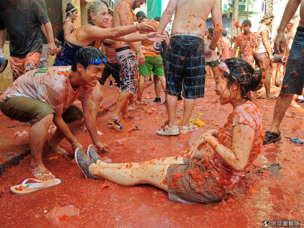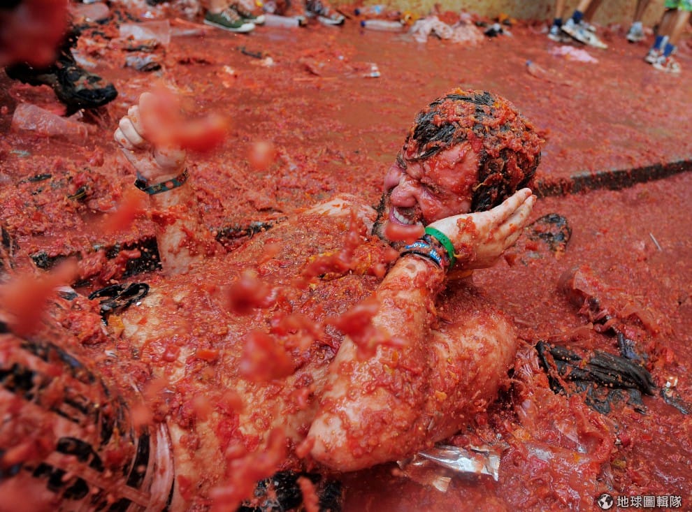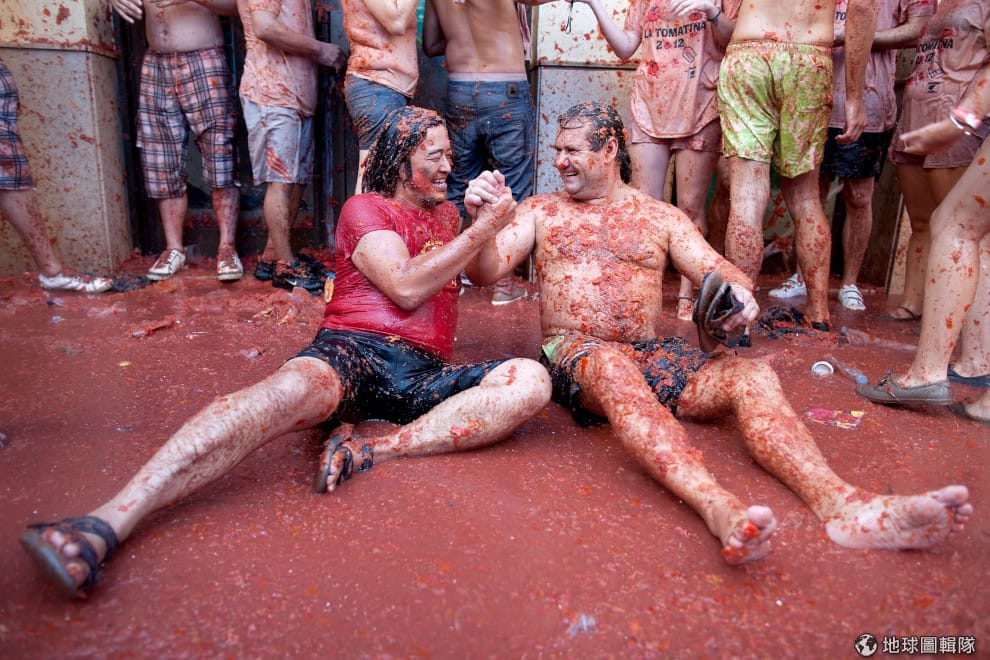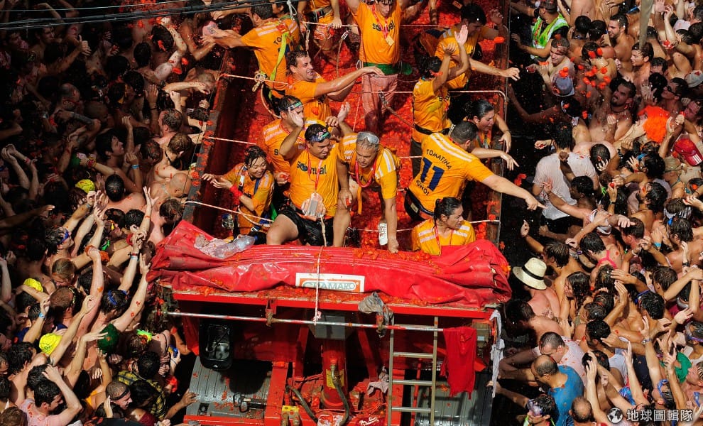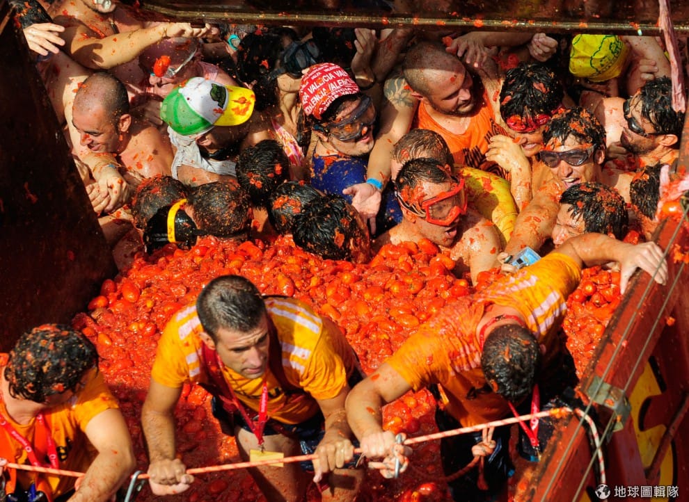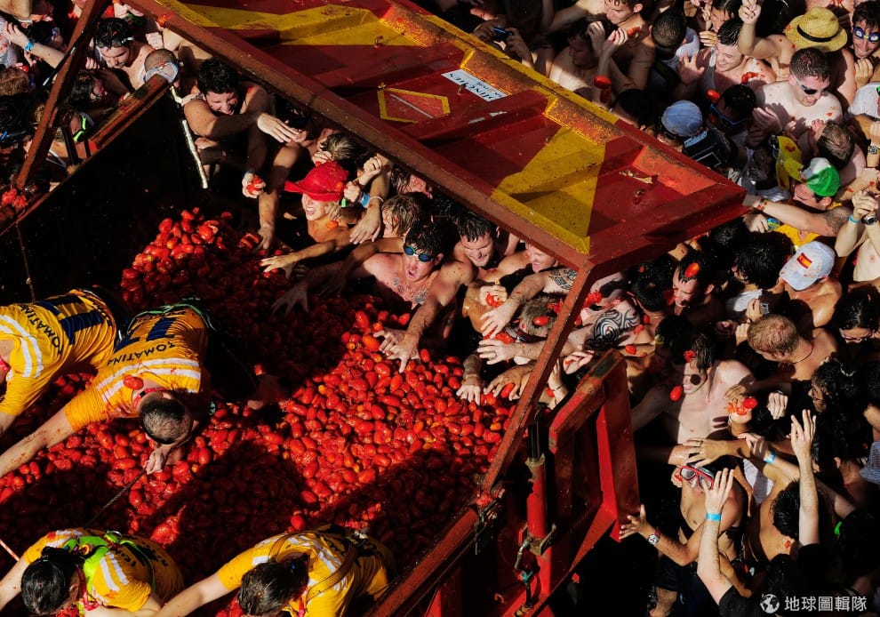 gettyimages番茄節(西班牙語:La Tomatina)在每年8月的最後一個星期三舉行,這項傳統活動的來源已經不可考,較常流傳的版本是:1945年,一名遊行隊伍中的年輕男子,因旁人推擠心生不滿,就隨手撿起一旁菜販所賣的番茄丟擲人群,結果越來越多人捲進這場爭執而開始互丟番茄,直到最後警方出現才平息這場番茄混戰。