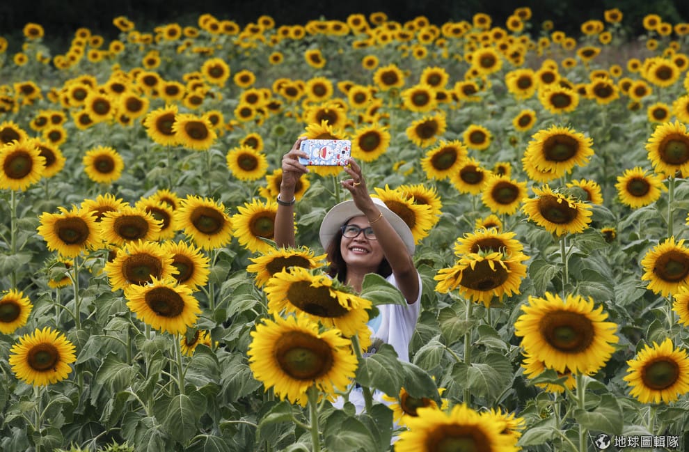 2014年11月,一名遊客在泰國的向日葵農場自拍。