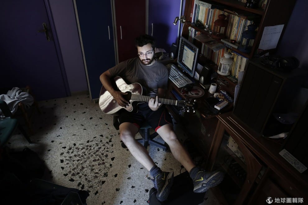 15- 24歲的青年人就業情況是最不樂觀的,失業率高達 64.9%。上圖彈吉他的青年是 23歲的喬治,他在 14個月前失去工作之後,就一直沒能找到新工作。
