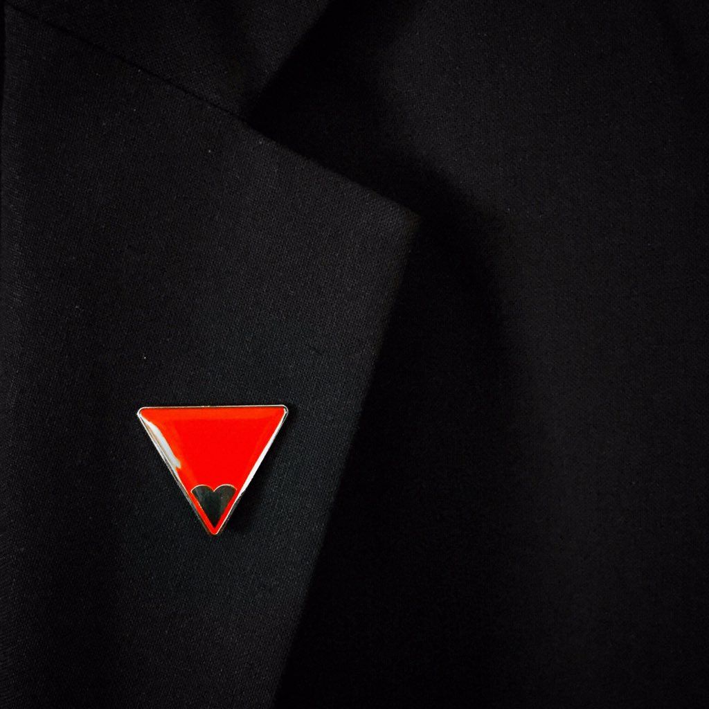 這是由自由慈善基金會推出的紅色三角形徽章計畫,這個紅色三角形的含意是要消除世界各國的女性割禮。
