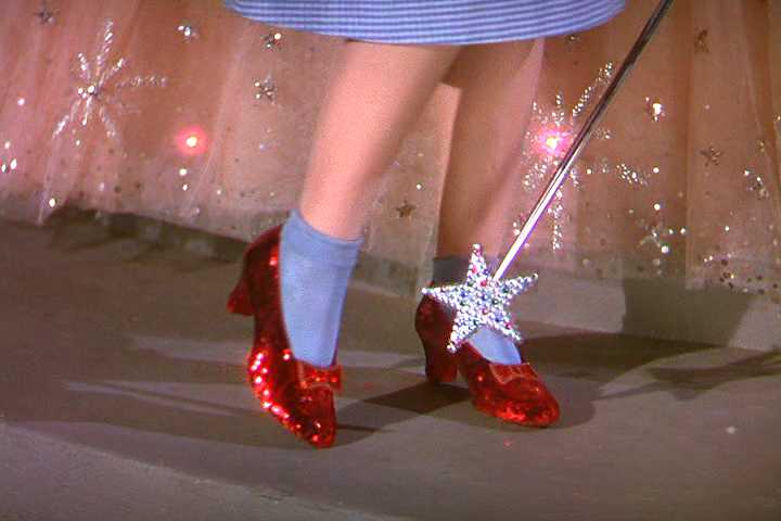 在 1939年出品的好萊塢電影《綠野仙蹤》中,女主角茱蒂嘉蘭到最後發現了紅鞋的妙用,可以帶她回到溫暖的家。