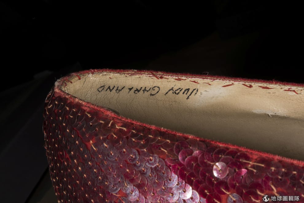 仔細看最近被找回來的紅寶石鞋,鞋子的內側寫的茱蒂嘉蘭的名字。