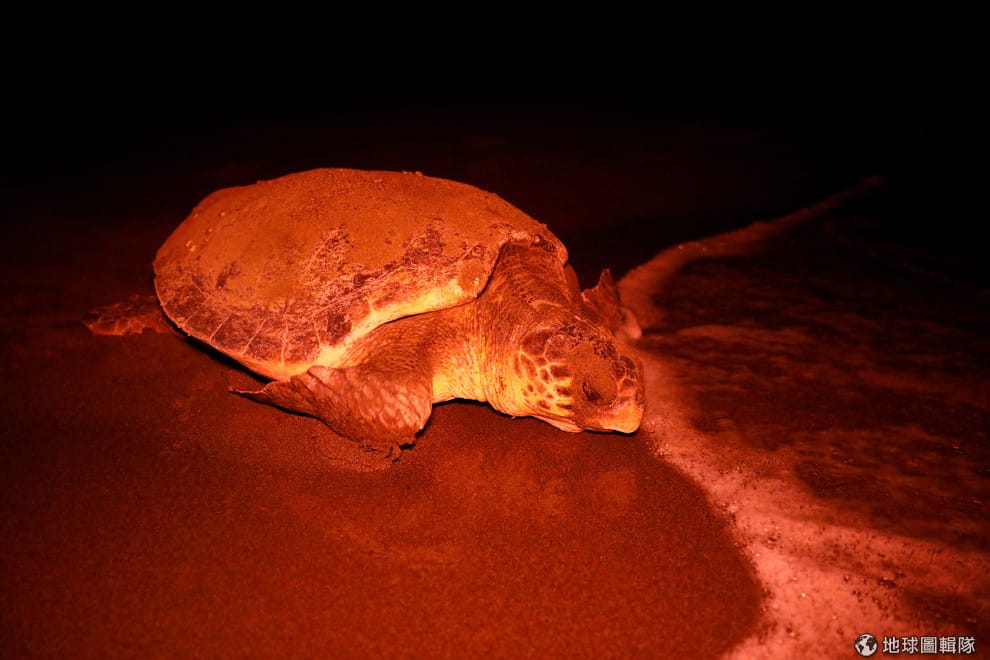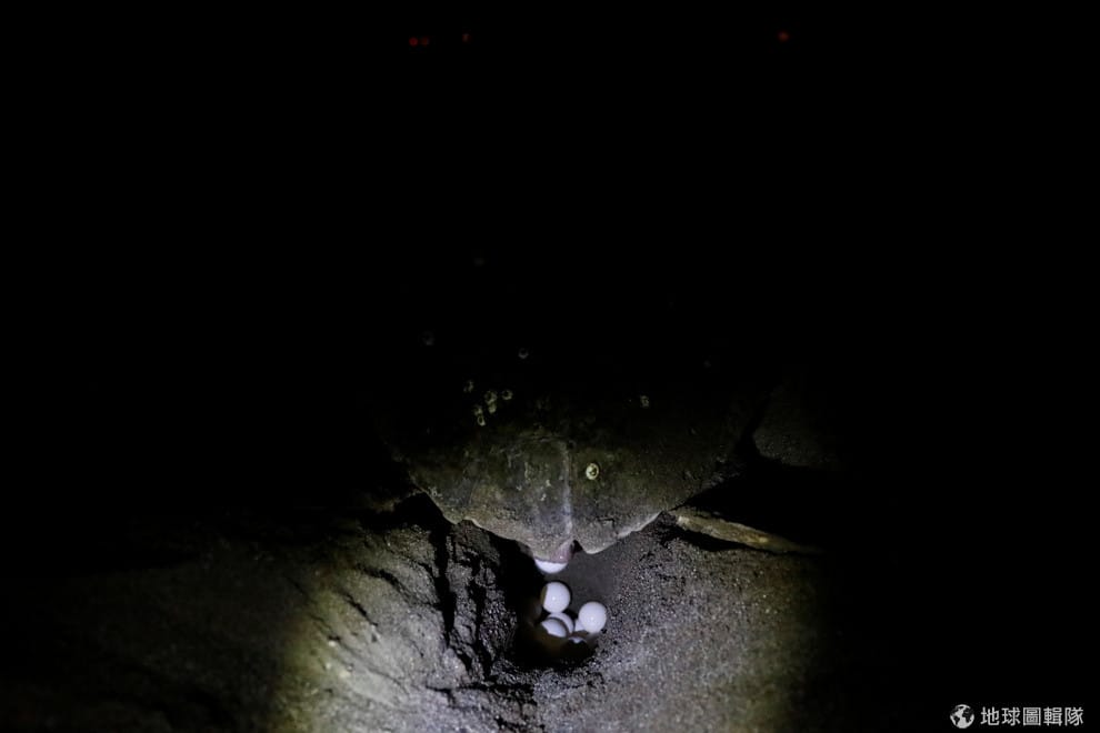路透社在海灘上,一隻海龜在產卵途中被攝影師捕捉下來。