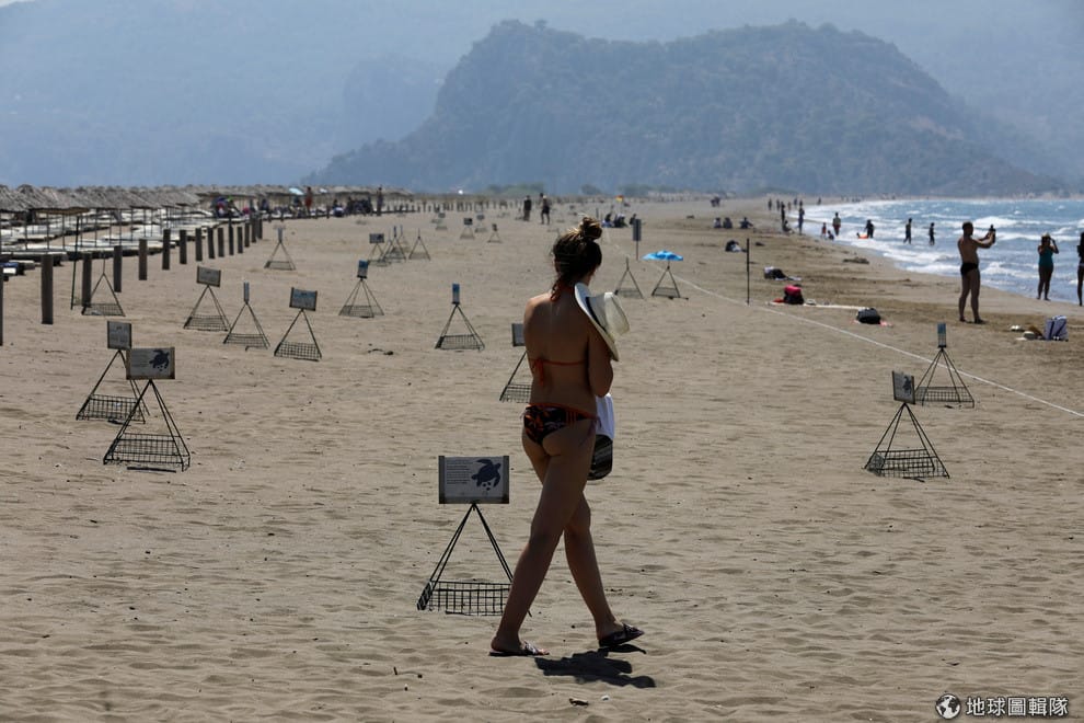 路透社走在Iztuzu海灘,有海龜蛋的地方被特別圍了起來,提醒觀光客不要誤闖。
