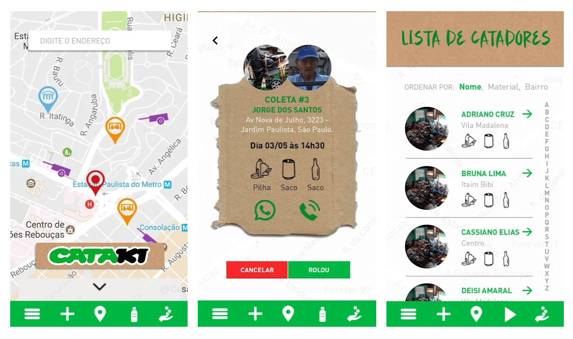 然而,桑朵斯和許多拾荒者一樣都生活在貧窮線下,並且常常被人以異樣的眼光看待。於是,長年關心拾荒者社會運動的APP開發者艾維斯(Bruno Castro Alves)和街頭藝術家馬達諾(Thiago Mundano)設計出了一款名為「Cataki」的APP,要來改善、翻轉拾荒者的處境。