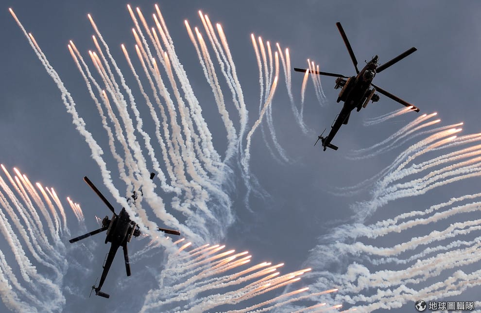 今年 8月初,俄國的特技飛行小組在 2018國際軍事節上進行著表演。