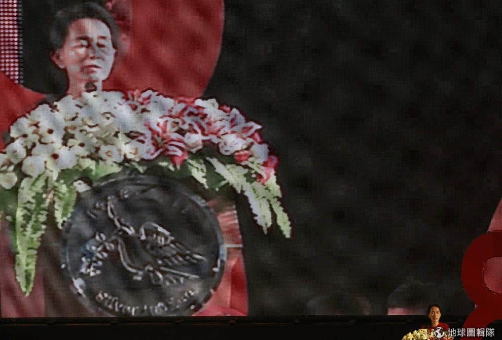 照片中是民主鬥士翁山蘇姬,她在怎麼面對緬甸棘手的種族、宗教衝突上,也讓她備受批判。