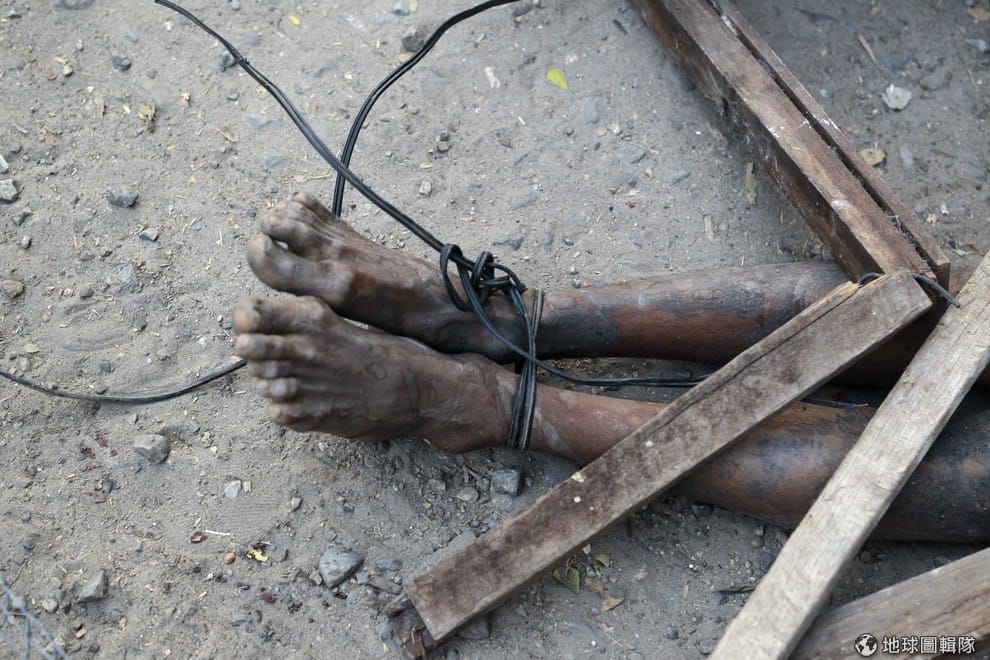 今年3月在緬甸發生的嚴重宗教衝突,釀成嚴重死傷,一名男孩的雙腳被綁縛躺在瓦礫中。