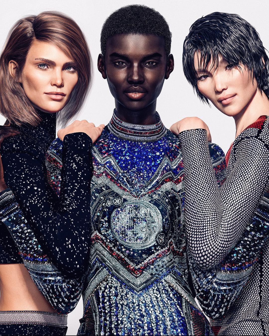 完美的顴骨、立體的五官綜合出來的魅力滿點,舒度(Shudu)、瑪格(Margot)、稚義(Zhi)三名模特兒是法國時裝品牌巴爾曼(Balmain)行銷活動的新面孔,而且她們全是虛擬模特兒。