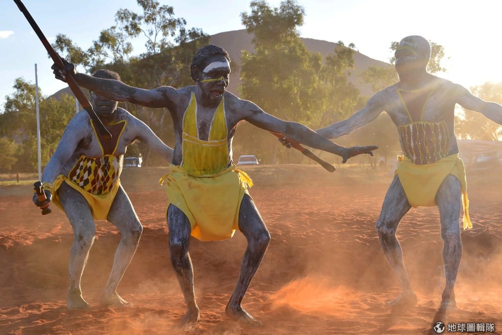 圖為 2017年5月, 在澳洲原民高峰會開幕式上,來自東阿納姆地區(East Arnhem Land)的原住民正在表演他們的傳統舞蹈。