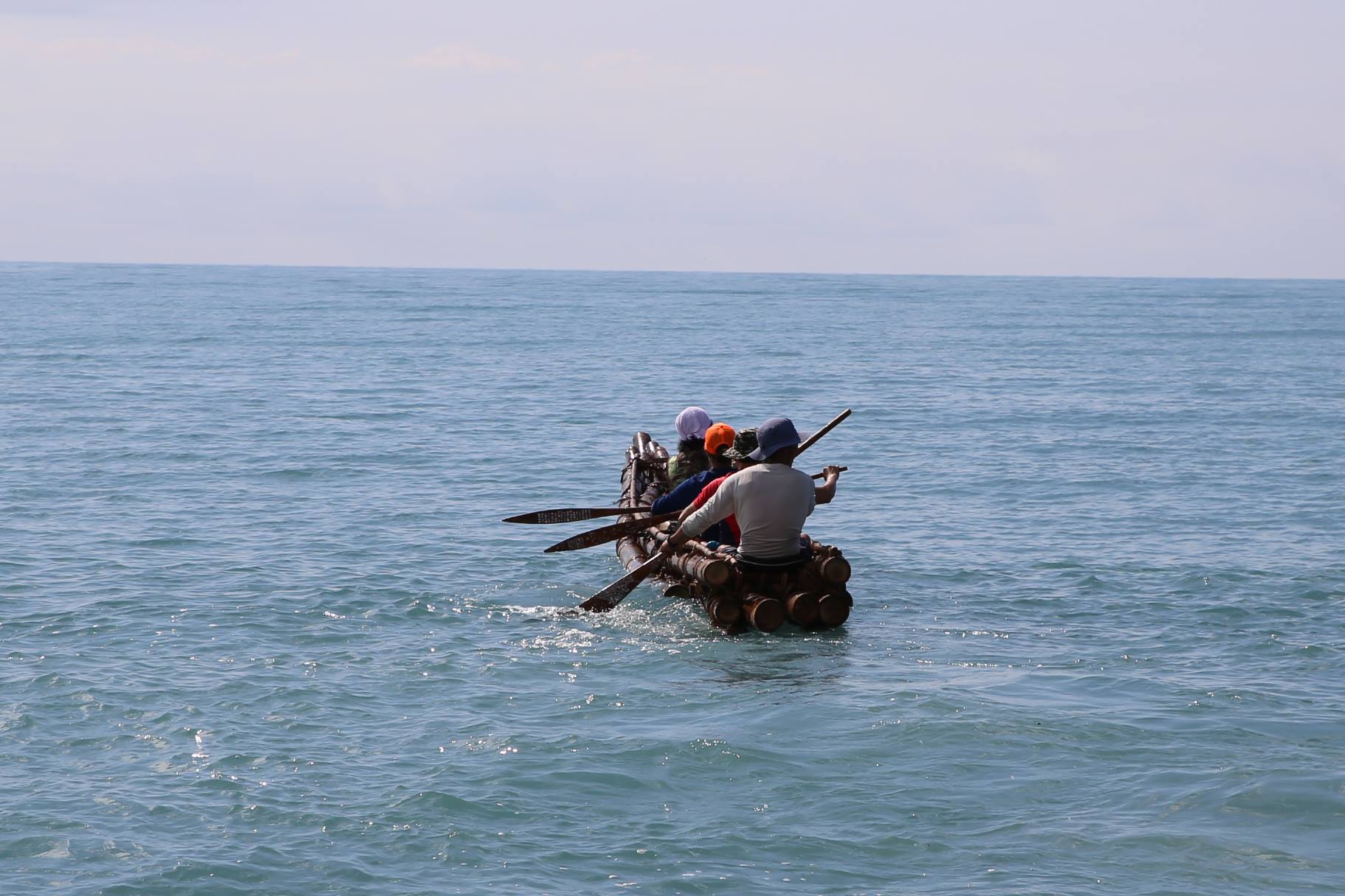 圖為 2017年6月,「三萬年前的航海計畫」團隊在台灣進行竹筏試航。