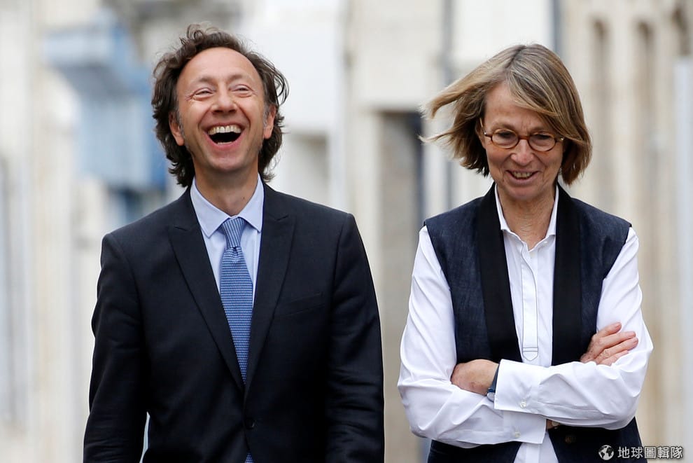 圖為法國文化部長尼森(Francoise Nyssen,右)和笑開懷的法國名人伯恩。伯恩是促成「文化遺產樂透彩」的最大推手。