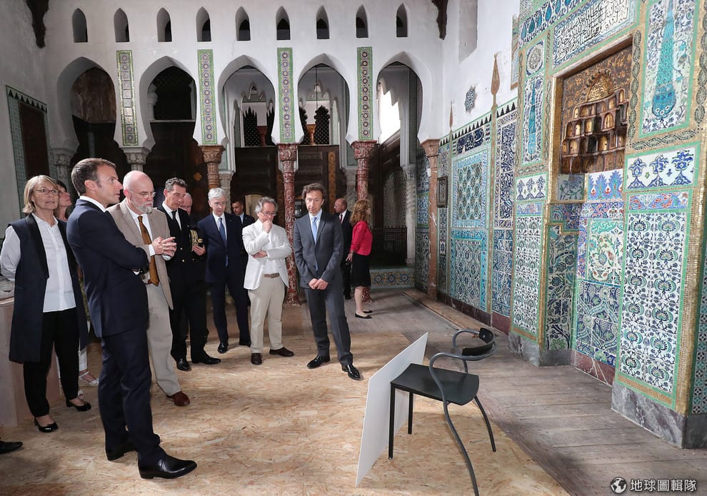 圖為今年 6月,法國總統馬克宏(前排左)和伯恩(前排右)等人,一起走訪法國作家洛蒂(Pierre Loti)在羅什福爾(Rochefort)的故居,這裡也是這次「文化遺產樂透彩」首波贊助的 18座古蹟之一。這個地方因為年久失修,從 2012年起不再對外開放。洛蒂在生前很喜歡旅行,他也將外國的建築特色融入家裡裝潢,例如:土耳其風格沙龍、阿拉伯風格寢室、日本風格的佛塔和穆斯林清真寺。