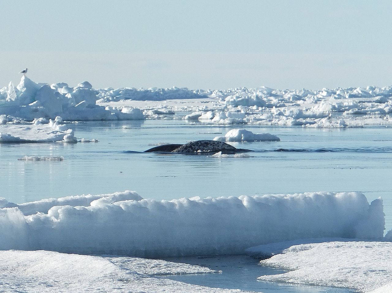 圖為拍攝於 2017年7月,一隻在加拿大北部北極群島悠游的獨角鯨。北極群島是獨角鯨普遍會出沒的活動地帶。